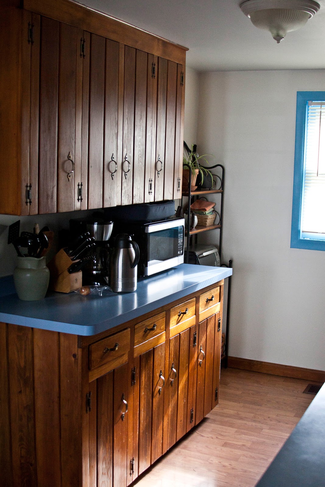 The counter tops were baby blue, and scraped and nasty.